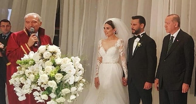 والأحد، شارك الرئيس التركي رجب طيب أردوغان إلى جانب زوجته أمينة أردوغان في الحفل الذي أطلق عليه “زواج العام”، حيث شهد كلا من الرئيس التركي ووزير الداخلية سليمان صويلو على مراسم عقد القران، وقال أردوغان في كلمة مقتضبة: “الأمم القوية تبنى من الأسر القوية”.