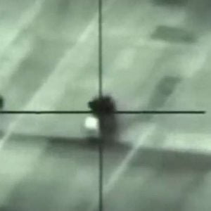 ويظهر في الشريط المصور، 3 أشخاص يقفون قرب العربة الناقلة للمنظومة.