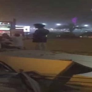تداول رواد مواقع التواصل الاجتماعي مقطع فيديو أظهر تحطم سيارة وحدوث تلفيات بسيارة أخرى إثر انهيار مبنى بسبب شدة الرياح بالرياض.