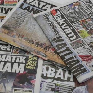 وطغى اللون الأسود على صدر الصفحات الأولى، حيث كتبت “حرييت” اسمها بالأبيض على خلفية سوداء، عوضا عن الأحمر، وكذلك فعلت صحف “صباح” و”ملييت”، و”بوستا”