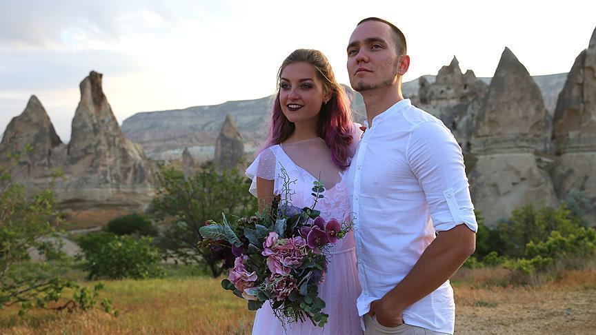 ويأتي العرائس والعرسان بشكل خاص من الشرق الأقصى وروسيا، مصطحبين معهم في الغالب فريق تصوير كامل، لالتقاط صور الزفاف، مع التشكيلات الصخرية المميزة في كابادوكيا المعروفة بـ”مداخن الجنيات”، والمناطيد التي تحلق في سماء المنطقة صباح كل يوم.