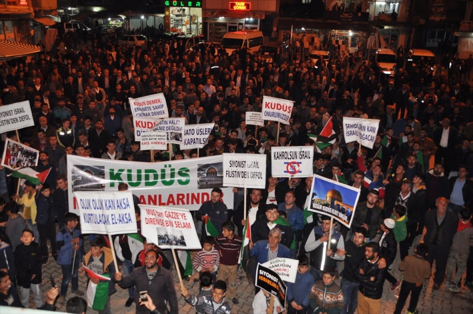 وبحسب مراسل الأناضول خرج المتظاهرون بولاية موش، شرقي البلاد، عقب صلاة التراويح بأحد الميادين؛ للتنديد بنقل السفارة الأمريكية من تل أبيب للقدس، ومقتل الفلسطينيين على يد القوات الإسرائيلية.