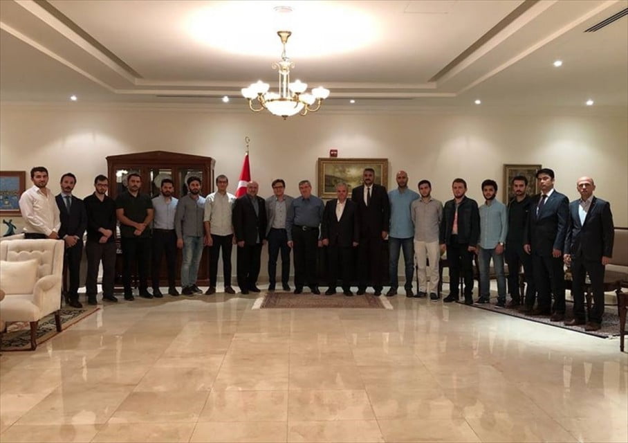 اجتمع عشرات الطلاب والأكاديميين الأتراك المقيمين في قطر على مأدبة إفطار اقامها السفير التركي بالدوحة فكرت أوزر بمقر السفارة.