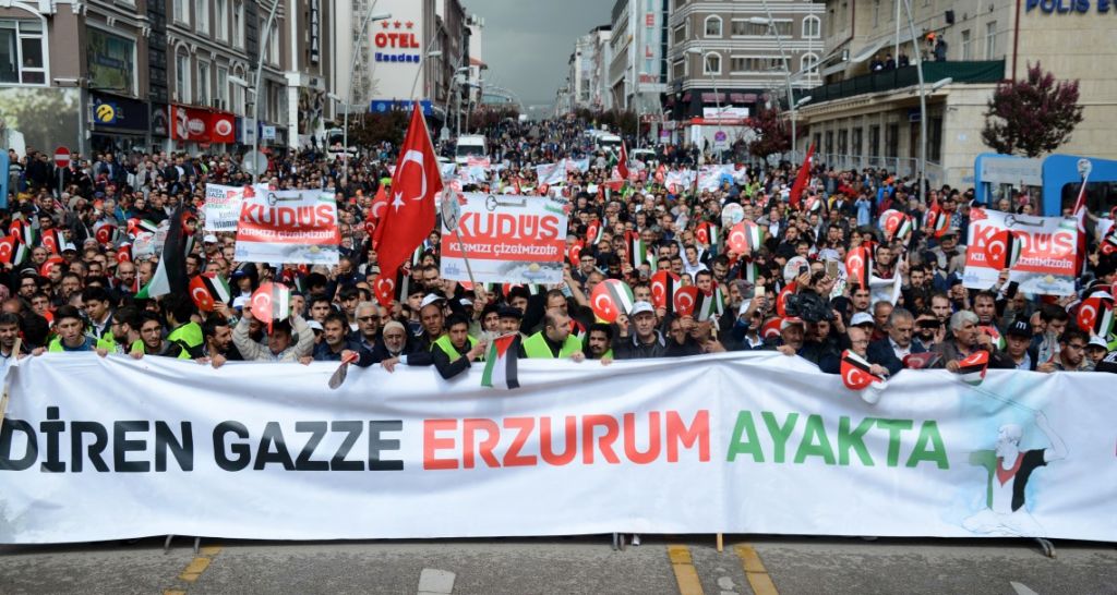 وفي مركز ولاية أرضروم، تظاهر ناشطون في منظمات مجتمع مدني؛ للتعبير عن رفضهم للخطوة الأمريكية، وتنديدا بالمجزرة الإسرائيلية في غزة.
