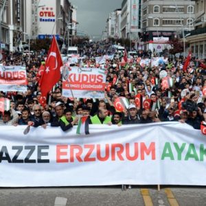 وفي مركز ولاية أرضروم، تظاهر ناشطون في منظمات مجتمع مدني؛ للتعبير عن رفضهم للخطوة الأمريكية، وتنديدا بالمجزرة الإسرائيلية في غزة.