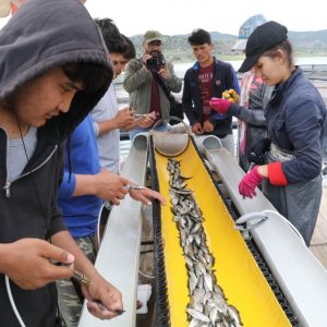 ويقوم الطلاب بإخراج الأسماك من الأحواض وتطعيمها باستخدام الإبر، ليصل عدد الأسماك التي يتم تطعيمها يوميا إلى نحو 50 ألفا.