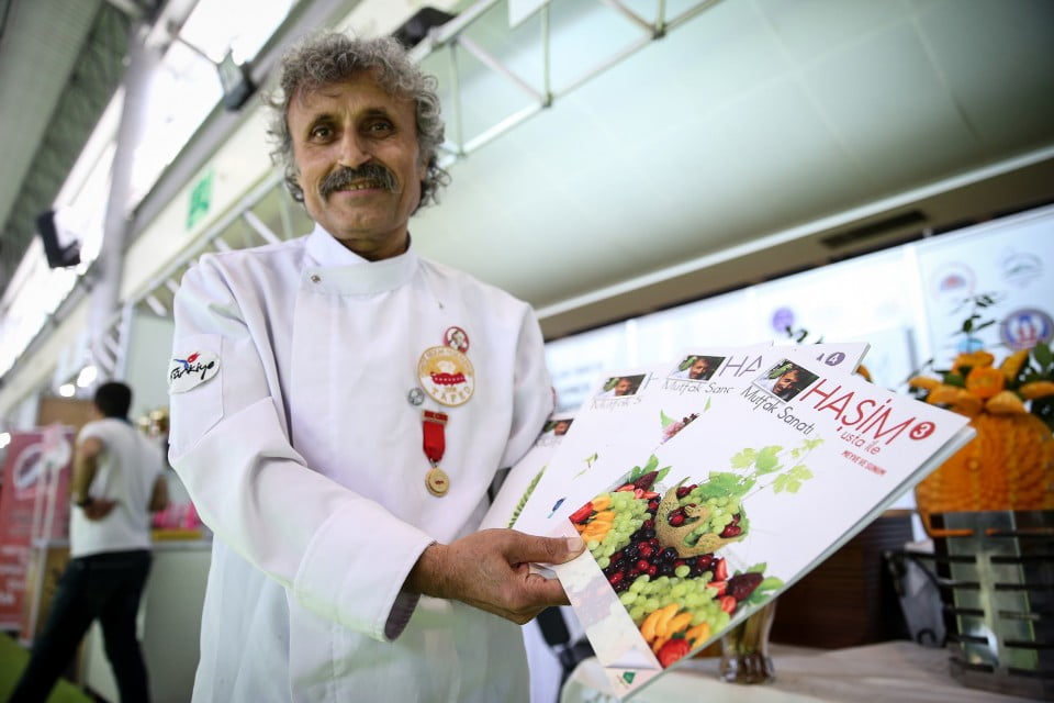 ومنذ 45 عامًا، يعمل دميرطاش كطباخ ومصمم ديكورات من الفواكه والخضروات والسمن والجليد، بعدما انتقل من النحت على الرخام- مهنته الأصلية- إلى النحت على الفاكهة والخضروات.