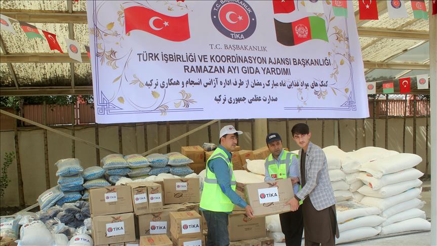 وزعت وكالة التعاون والتنسيق التركية (تيكا)، مساعدات غذائية على المحتاجين في أفغانستان بمناسبة شهر رمضان.