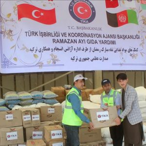 وزعت وكالة التعاون والتنسيق التركية (تيكا)، مساعدات غذائية على المحتاجين في أفغانستان بمناسبة شهر رمضان.