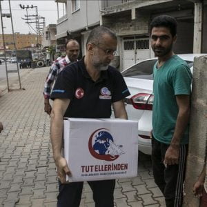وزعت جمعية “خذ بأيديهم الدولية” التركية، وجمعية “أمسك بيدي” السويسرية، مساعدات غذائية لألف من المحتاجين في قضاء ريحانلي التابع لولاية هطاي جنوبي تركيا.