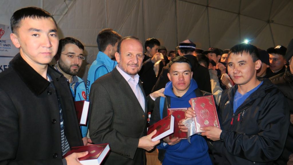 وجاء توزيع النسخ القرآنية على المشاركين في حفل إفطار جماعي، نظمه الوقف التركي في مسجد “صادوأكاس حاج غيلماني” بمدينة أستانة.