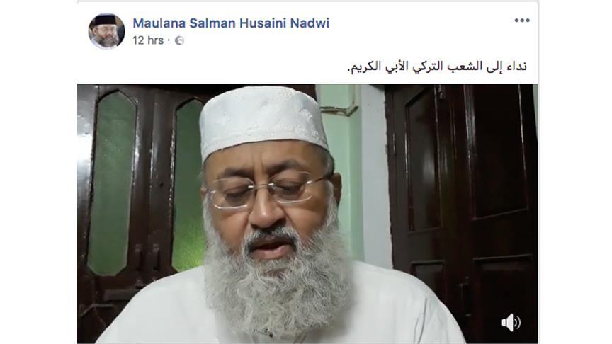 وقال الندوي في رسالة مصورة عبر حسابه على “فيسبوك” اليوم الثلاثاء، “نحن نمثل الشعوب الإسلامية، والشعب الهندي الكبير الذي يبلغ قرابة 300 مليون (مسلم)، نطالب الشعب التركي المسلم أن يقف مع رجب طيب أردوغان، ومع حزبه في الانتخابات رغم المحن والابتلاءات التي يصاب بها”.