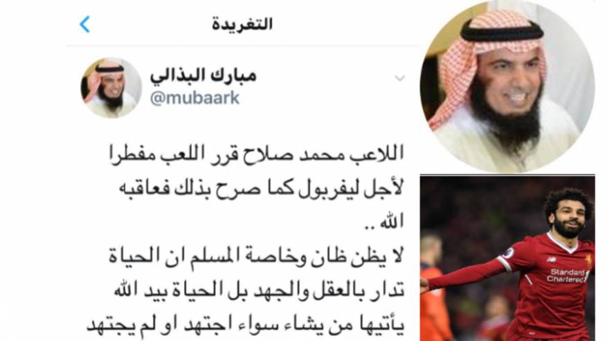 أكد الداعية الكويتي، مبارك البذالي، أن ما حصل مع المهاجم المصري محمد صلاح، أمر “شرعي”، وذلك في رده على تغريدة سابقة نشرها وأكد فيها أن صلاح أصيب في نهائي دوري أبطال أوروبا، لأنه أفطر يوما في شهر رمضان.