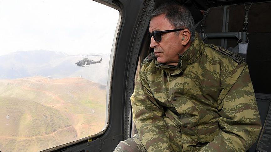 تفقد رئيس الأركان التركي الجنرال، خلوصي أكار، السبت، القطعات العسكرية في قضاء “يوكسك أوفا” بولاية هكاري جنوب شرقي البلاد.