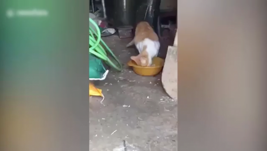 انتشر فيديو على وسائل التواصل الاجتماعي يظهر استيلاء جرذ ضخم على طعام القط المسكين أمام عينيه، واكتفى فقط بالمشهادة دون الدفاع عن طعامه أو حتى ملاحقة الفأر.