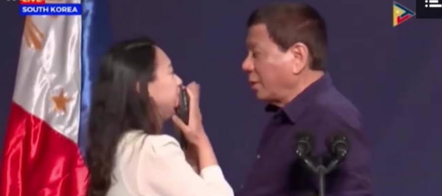 أثار الرئيس الفلبّيني رودريغو دوتيرتي حالةً من الغضب بعدما قام بتقبيل مواطنة فلبّينية تعمل بالخارج على شفتيها خلال فعالية عامّة بكوريا الجنوبية.