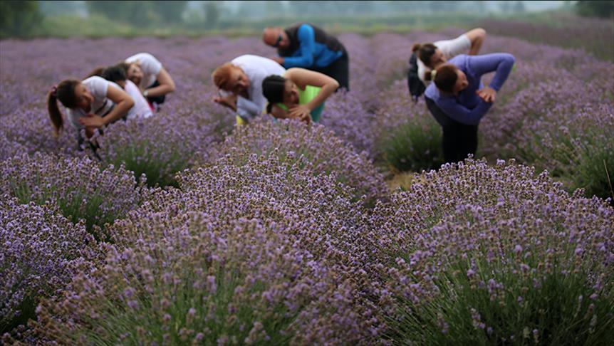 مع بزوغ أشعة الشمس الأولى، توجهت مجموعة من الأتراك إلى حقل للخزامى في ولاية أدرنة شمال غربي البلاد، لممارسة رياضة اليوغا.