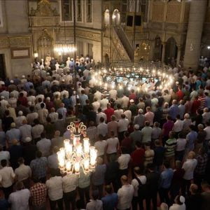 ما أن يرتفع أذان العشاء حتى يزدحم المسجد بالمصلين من إسطنبول وخارجها، ويتحول المسجد وساحاته والأسواق المحيطة به إلى خلية نحل تعج بأصوات عذبة تتلو آيات القرآن الكريم وتلهث بالأذكار، في جو إيماني رائع.