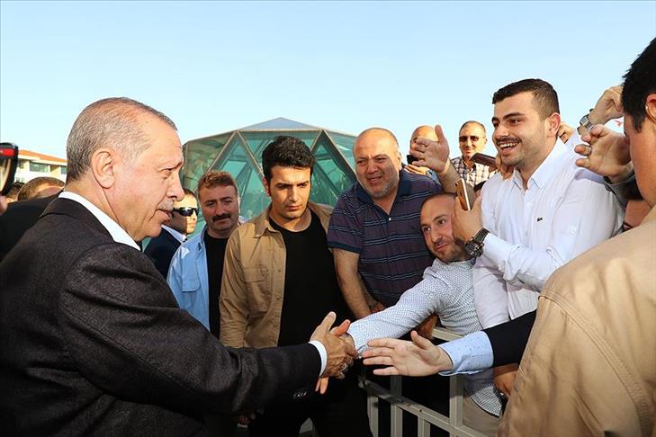 وعقب الانتهاء من الصلاة، التقى أردوغان عددا من المصلين، وهنّأهم بالعيد.