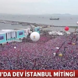 يواصل مئات آلاف المواطنين الأتراك القدوم إلى ميدان يني كابي أكبر ساحات مدينة إسطنبول التركية للمشاركة في مهرجان حزب العدالة والتنمية الانتخابي الكبير في المدينة.