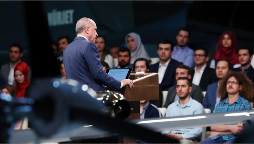 جاء ذلك في تصريحات أدلى بها أردوغان خلال اجتماعه بشباب أتراك في إطار برنامج “لقاء الشباب والتكنولوجيا” الذي بث من مقر شركة الصناعات الجوية والفضائية التركية “توساش/ تاي”.