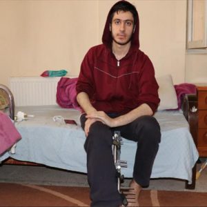 أما عبد الكريم حبق (19 عامًا)، الذي يقطن مع قاسم في المنزل، فقال إنه أصيب جراء برميل متفجر ألقته مروحية تابعة لقوات الأسد على منزله بمدينة حلب قبل 3 أعوام، وإنه فقد جميع أفراد أسرته في ذلك الانفجار.