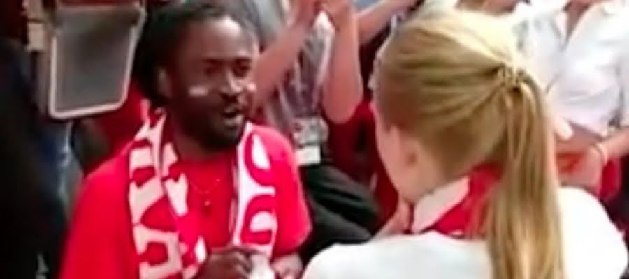 قد يمثل الأمر أسوأ الكوابيس بالنسبة لبعض النساء، ولكن هذه المرأة كانت سعيدة عندما طلب شريكها الزواج منها خلال إحدى مباريات كأس العالم.