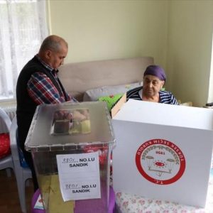 أدلت السيدة زينب هانم بيلغيج بصوتها في الانتخابات الرئاسية والبرلمانية، في منزلها بولاية آديمان (جنوب) وفق نظام الصناديق الجوالة المخصصة للمرضى وذوي الاحتياجات الخاصة.