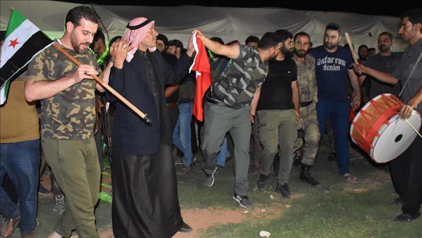 وبنفس الشكل، جاب السوريون في مدن اعزاز وجرابلس والباب بمنطقة درع الفرات، الشوارع حاملين أعلام تركيا.
