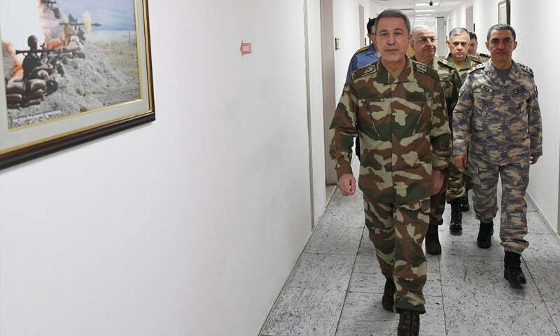 تفقد رئيس الأركان التركي خلوصي أكار، وحدات عسكرية على الحدود مع سوريا برفقة قادة عسكريين.