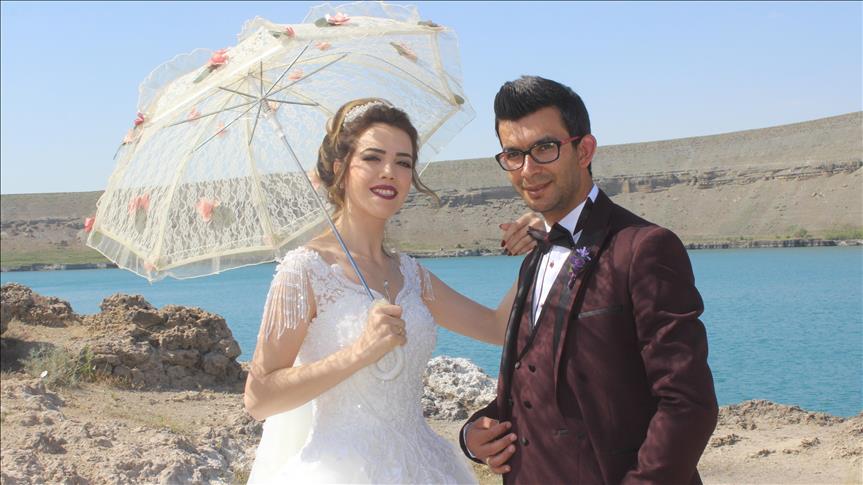 وقالت غولسوم للأناضول، ” قررت مع زوجي شاهين، التقاط الصور عند البحيرات، في يوم فرحنا”.