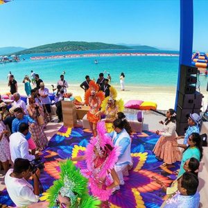 وفي أحد الفنادق الفخمة في بودروم، أقيم حفل للعروسين راهيل غوبتا، وهارشيتا أغاروال، الذين ينتميان إلى عائلتين ثريتين في الهند.