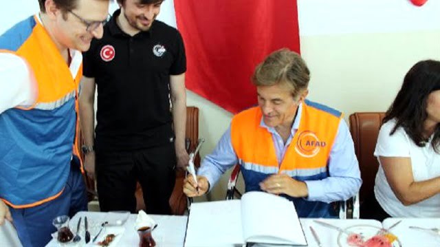 وبعد زيارته محلًا لتصفيف الشعر في المخيم، وفحصه رضيعًا مريضًا يبلغ من العمر 14 شهرًا، شكر أوز في تصريح صحفي، جميع العاملين في المخيم والقائمين على تقديم الخدمات.