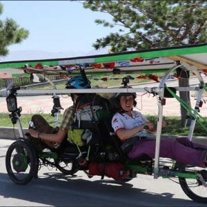 وصل فريق كندي، اليوم الخميس، ولاية أرزينجان شرقي تركيا، على متن دراجة هوائية هجينة مزودة بألواح طاقة شمسية، للفت الانتباه إلى أهمية الطاقة المتجددة.