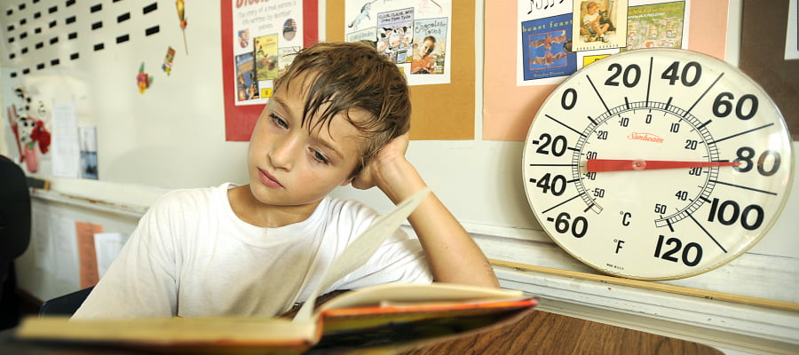 إذا كانت علاماتك الدراسية منخفضه، لا تقس على نفسك، وضع اللَّومَ على الصفوف المدرسية غير المزودة بالمكيفات الهوائية. نعم، هذا ما أكده العلماء أخيراً لينصفوا ويبرّروا للتلاميذ «غير الموفَّقين» في تقارير آخر السنة.