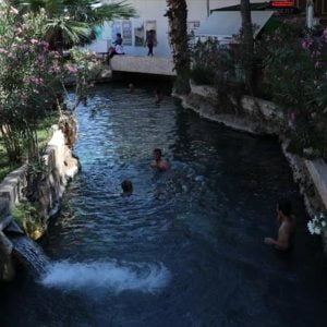 يجذب حوض هيرابوليس الأثري، ذو المياه المعدنية الطبيعية، في ولاية دنيزلي غربي تركيا، آلاف السياح الباحثين عن العلاج سنويا بفضل حرارة مياهه الثابتة التي تبلغ 36 درجة على مدار العام.