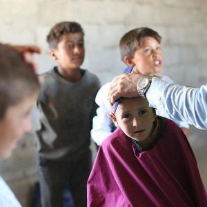 وجاء الحلاقون المتطوعون من تركيا، اليوم الأربعاء، وتوزعوا على المخيمات المنتشرة في المنطقة (إعزاز).