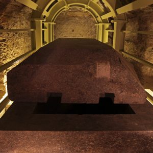 وقال مصطفى وزيري الأمين العام للمجلس الأعلى للأثار، إن المقبرة تحتوي على تابوت مصنوع من الجرانيت الأسود يعد من أضخم التوابيت التي تم العثور عليها بالإسكندرية، ويبلغ ارتفاعه ١٨٥ سم وطوله ٢٦٥ سم وعرضه ١٦٥سم.
