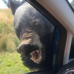 وخلال قيام العائلة بجولة داخل السيارة، هاجمها دب أسود شرس وأثار حالة من الهلع.