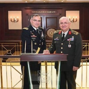 استقبل يشار غولار،رئيس هيئة الأركان التركية، اليوم الأربعاء، قائد القوات الأمريكية في أوروبا الفريق أول كيرتس مايكل سكاباروتي، في العاصمة أنقرة.