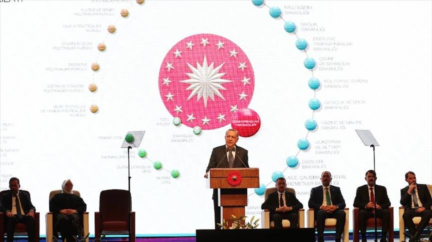أعلن الرئيس التركي، رجب طيب أردوغان، عن أهداف حكومته الرئاسية الجديدة، في مجالات عدة بينها الاقتصاد والطاقة والمواصلات والتجارة الخارجية والعقارات، فضلا عن السياسة الخارجية، على أن يتم تحقيقها في الـ 100 يوم الأولى من عمل الحكومة.