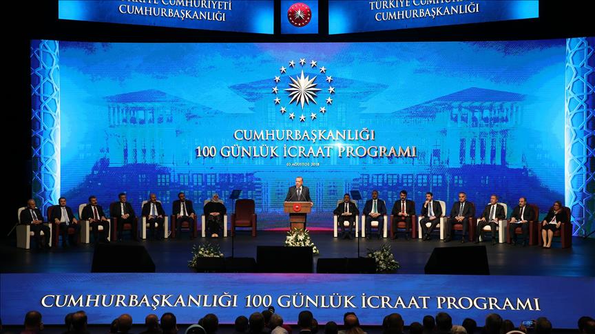 يعلن الرئيس التركي رجب طيب أردوغان، الأهداف التي وضعتها الحكومة الرئاسية الجديدة، من أجل تحقيقها في 100 يوم الأولى من عملها.
