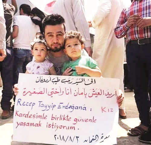 ونظم أهالي مدينة إدلب مسيرات تأييد وتعبير عن الحب للرئيس أردوغان، وهم ينتظرون أفراد الجيش التركي ليخلصوهم من هذا العذاب.