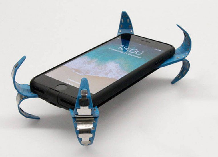 فقد صمّم وسادة هوائية تخرج شوكات معدنية من جوانب الهاتف الأربعة لحمايته عند السقوط وكأنّها دعائم هبوط.