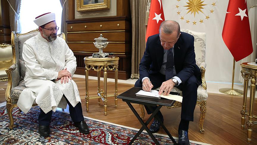 جاء ذلك خلال استقبال الرئيس أردوغان رئيس الشؤون الدينية في القصر الرئاسي بالعاصمة أنقرة، اليوم الخميس.