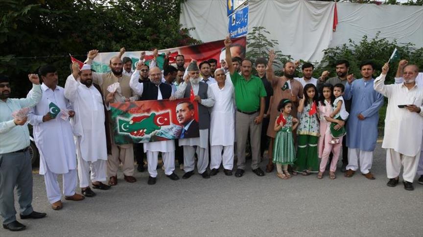 جاء ذلك في فعالية أمام جمعية الصحفيين، بالعاصمة إسلام أباد، نظمتها الجماعة الإسلامية وأحزاب سياسية أخرى، شهدت رفع الأعلام التركية والباكستانية معا.