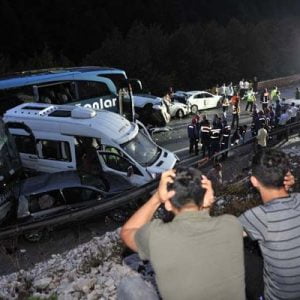 قتل شخص واصيب اخرين في تصادم مروع بين عشرات المركبات على طريق شمال غربي تركيا.