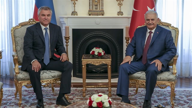 إلتقى رئيس البرلمان التركي بن علي يلدريم، اليوم السبت، رئيس مجلس الدوما الروسي، فياتشيسلاف فولودين، في العاصمة أنقرة.