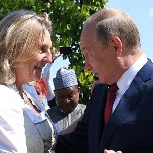 وظهرت الوزيرة كنايسل (53 عاما) في عدة صور وهي تبتسم، مرتدية فستانا أبيض طويلا، وتتحدث مع بوتين أثناء رقصهما في الحفل، الذي أقيم في إقليم ستيريا بجنوب النمسا، في حين كان بوتين يصغي باهتمام.