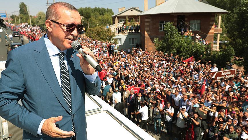 وقال أردوغان “لن يتمكنوا من تقسيمنا وتفتيتنا ما دمنا يدا واحدة، وبإذن الله سنواصل السير بشكل مختلف لبلوغ أهدافنا لأعوام 2023 و2053 و2071”.